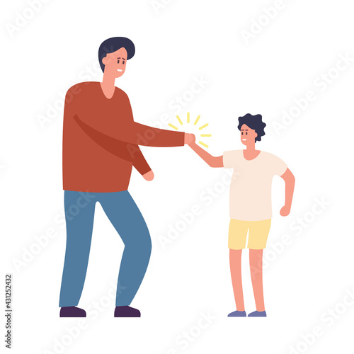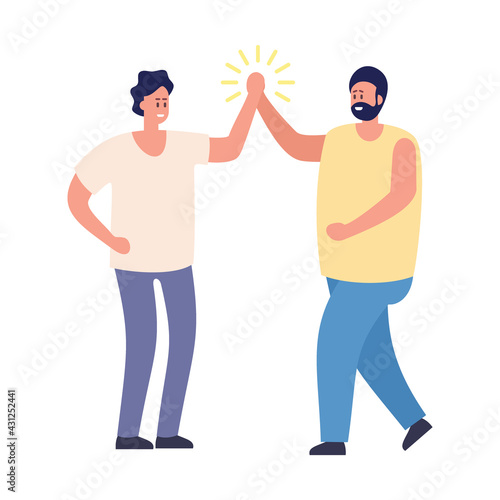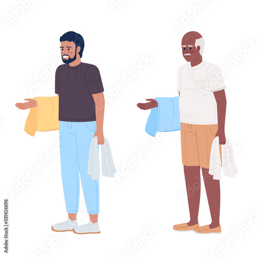 Muži v lékařských maskách udržování sociální vzdálenosti vektorové ikony izolovaných na bílém pozadí. Koncept virové pandemie.