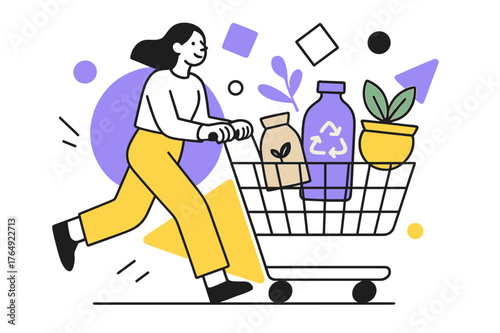 Tampony, podložky hygienické ubrousky a menstruační kalíšek nebo mísa, drobné ženské postavy, ploché vektorové ilustrace. Menstruační období ženské hygienické výrobky a zařízení.