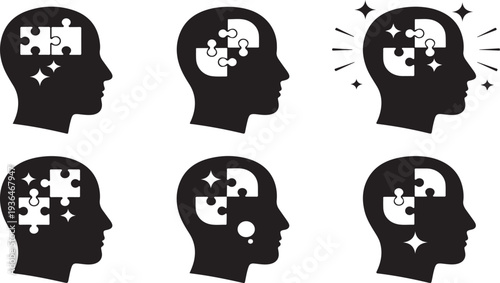 Duševní porucha. Vektorové papír řezané hlavy silueta s mraky slunce déšť, blesk. Duševní zdraví, deprese, spánek, bipolární, sezónní postižené, obsedantně kompulzivní poruchy. Psychologie, psychiatrie.