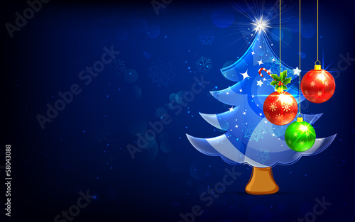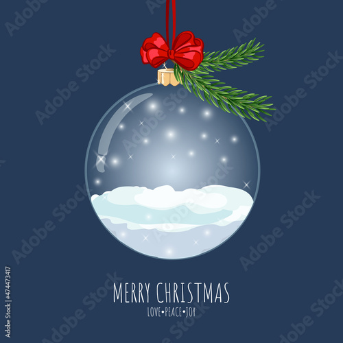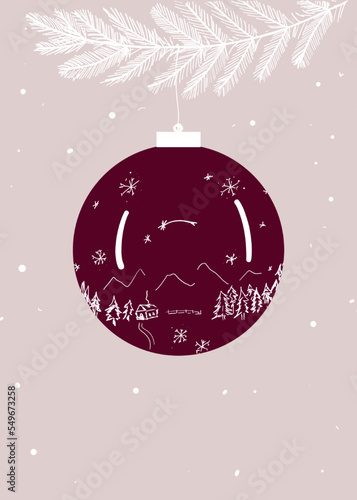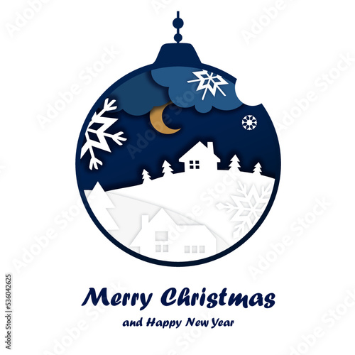 Vrstvený papír řez vánoční strom koule s zimní noční krajiny, sob rodina uvnitř a holly berry, vektorové izolované ilustrace. Veselé Vánoce Šťastný Nový rok složení v papírovém uměleckém stylu.