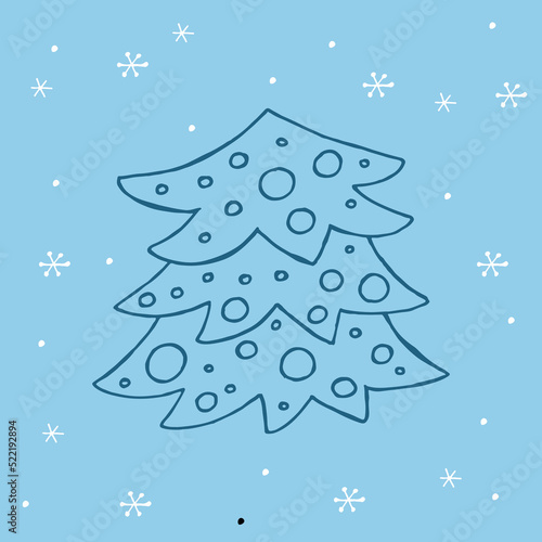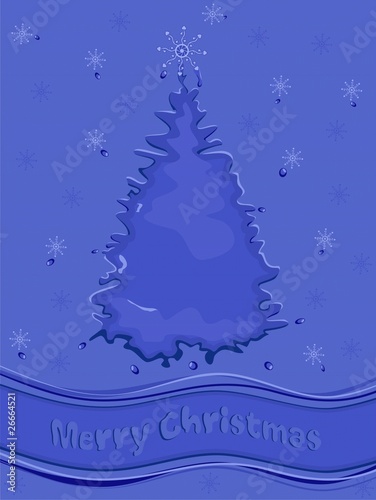 Veselé Vánoce blahopřání vektorové šablony. Vrstvený papír ve stylu vánočního stromu se zimní noční lesní krajinou, siluety rodiny jelenů uvnitř, sněhové vločky a veselé vánoční ruční nápisy.