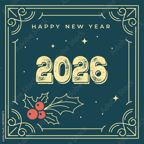 Veselé Vánoce a Šťastný Nový Rok pozadí šablony a banner. Zimní dovolená vektorové ilustrace ve vintage stylu. Vánoční strom a hračky. 2023 Nový rok ručně kreslená karta.
