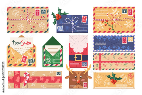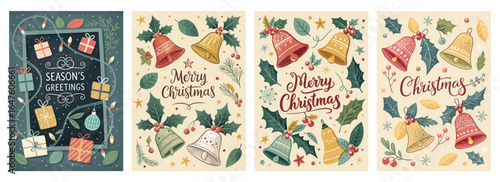Veselé Vánoce Pohlednice šablona design izolované set. Vánoční slavnostní web banner, sociální média kryt, tisk s blahopřání titulek a předvečer vzor vektorové ilustrace