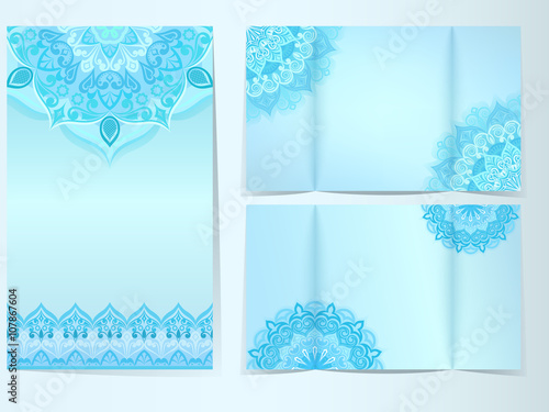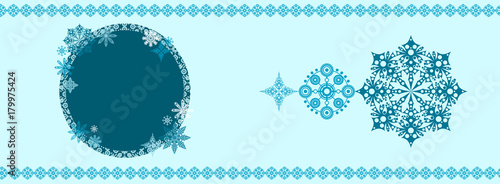 Veselé Vánoce a Šťastný Nový Rok plakát vektorové šablony sada s krásným bílým papírem řezané sněhové vločky na modrém pozadí, kopírovat prostor.