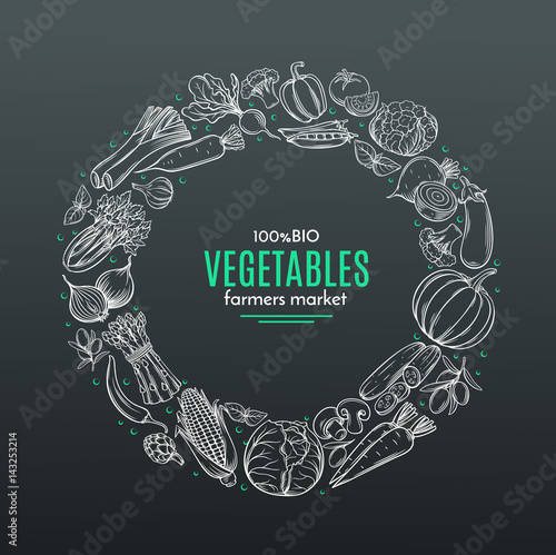 Veselé Vánoce kulaté hranice na tabuli vektorové ilustrace. Happy holiday pozadí s sladké pečivo zachází a teplé nápoje art design. Slavnostní grafický náčrt ve stylu grunge