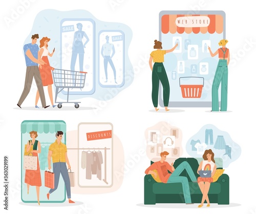 Vektor Metaverse. Muž na sobě VR headset koupit NFT digitální aktiva pro charakter ve virtuálním světě ilustrace. Blockchain a nezastupitelný token