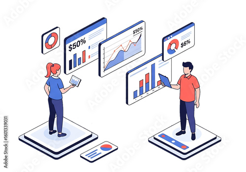 Vektor Metaverse. Žena na sobě VR brýle headset s 3D zkušenosti v nakupování ve virtuálním obchodě ilustrace