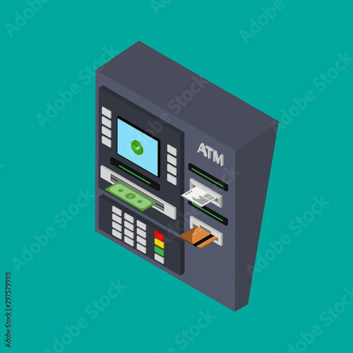 Metro vlak jízdenka stroj stanice interiér vektor. Izometrický samoobslužný samoobslužný automatický elektronický kiosek pro platbu kartou ravel izolovaných na bílém pozadí
