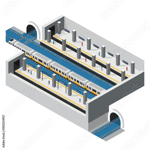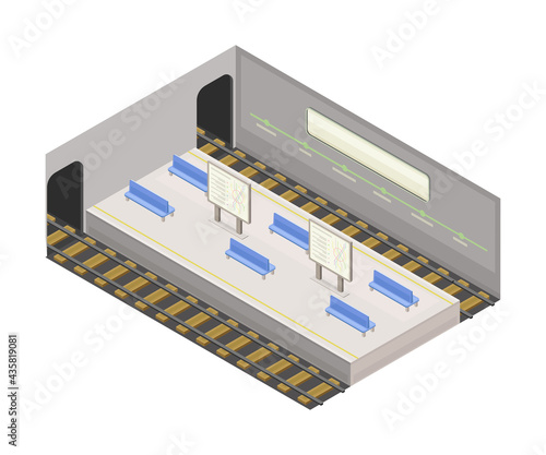 Metro stanice metra vchod vektor. Izometrická ilustrace tunelu metra. Část železniční trati. Pohled izolovaných na bílém pozadí