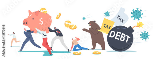 Mikro mužské a ženské postavy zdobí obrovskou mexickou lebku, vektorové ilustrace. Mexická kultura, koncept oslavy Dne mrtvých pro webový banner, webová stránka atd.