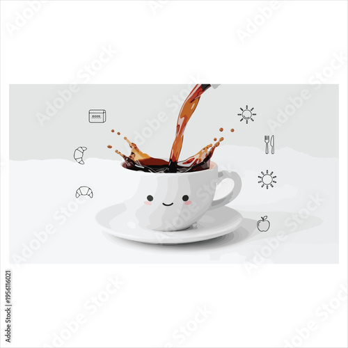 Mléko tok přes popraskané Kokosové realistické vektorové ikony. Designový prvek pro sladké výrobky izolovaných na bílém pozadí