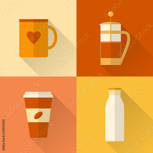 Vektorové ilustrace džbánu na mléko, plechovky, krabice s obrázkem láhve na mléko a sklenice se stříkáním mléka. Oblíbený přírodní nápoj. Plochý design