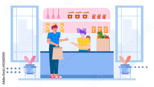 Mléko obchod vitrína a prodejce vektorové ikony izolovaných na bílém pozadí