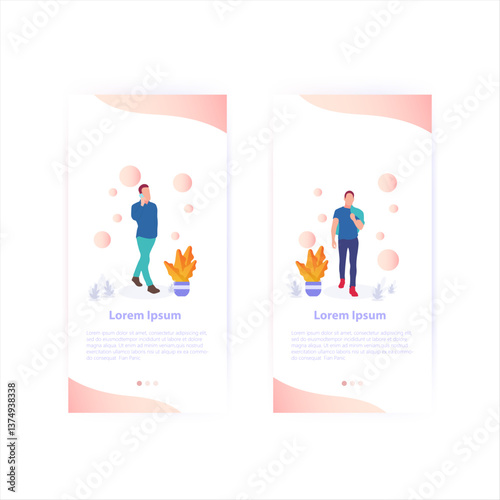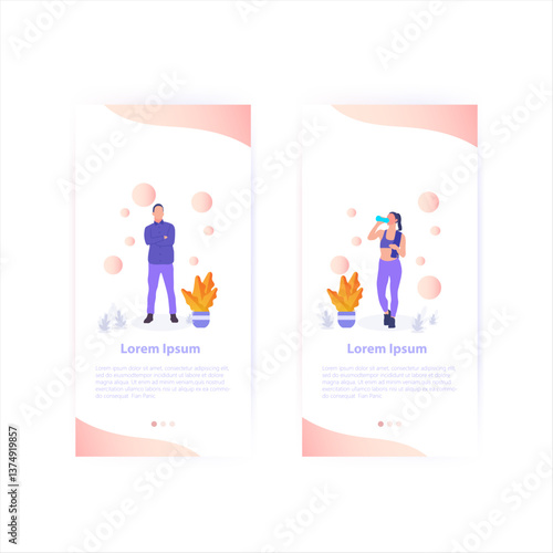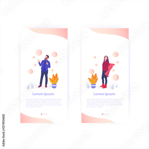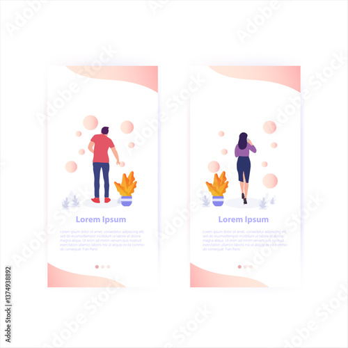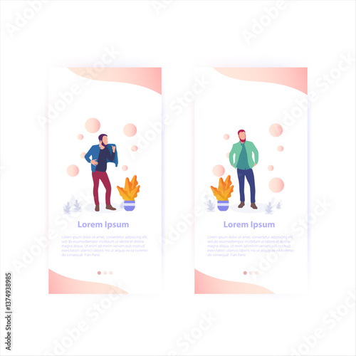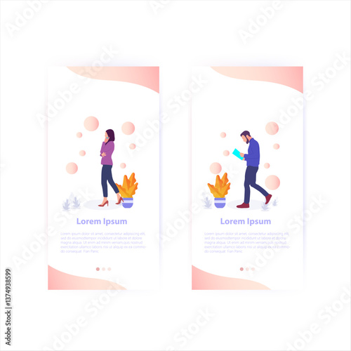 Mobilní aplikace onboarding obrazovky. Obchodní grafy, obchodní dohoda a smlouvy, finanční prognóza. Nabídka vektorový banner šablona pro webové stránky a mobilní vývoj. Design webových stránek plochý ilustrace.