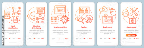 Mobilní aplikace onboarding obrazovky. Chyba připojení, odepřen přístup, SEO optimalizace a vývoj webových aplikací. Nabídka vektorový banner šablona pro webové stránky a mobilní vývoj. Design webových stránek plochý ilustrace.
