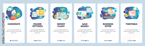 Mobilní aplikace onboarding obrazovky. Marketing, branding, video produkce, startup. Nabídka vektorový banner šablona pro webové stránky a mobilní vývoj. Design webových stránek plochý ilustrace.