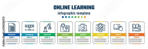 Mobilní aplikace onboarding obrazovky. Školní vzdělání, batoh, oběd box, notebook a testovací známky. Nabídka vektorový banner šablona pro webové stránky a mobilní vývoj. Design webových stránek plochý ilustrace.