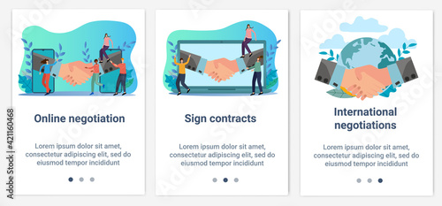 Mobilní aplikace onboarding obrazovky. Sportovní hra online vysílání na mobilním telefonu. Karate, baseball, závodění. Nabídka vektorový banner šablona pro webové stránky a mobilní vývoj. Design webových stránek plochý ilustrace.