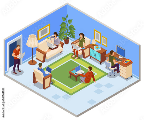 Mobilní bankovnictví vektorové ploché 3D izometrické ilustrace. Zaměstnanci banky a zákazníci se nacházejí uvnitř smartphonu. Použití mobilního zařízení k provádění online bankovních transakcí koncepční prvek návrhu.