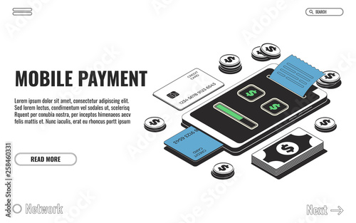 Mobilní data analytics app vektorové izometrické 3D ikona. Business digital chart and graph research report, infographic diagram na obrazovce smartphonu izolovaných na bílém pozadí