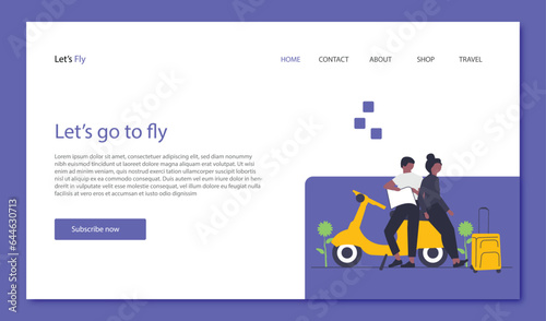 Šablona webových stránek vstupní stránky mobilní navigace. Vektorový izometrický smartphone s mapou trasy a špendlíkem, kufry, turistický kompas. Chytrý telefon s navigační aplikací. Koncept GPS.