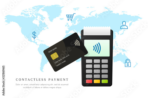 Šablona webových stránek pro mobilní platby, design webových stránek a vstupních stránek pro vývoj webových stránek a mobilních stránek. Bezkontaktní platba, nfc nebo near field communication mainstreamová bezdrátová technologie.