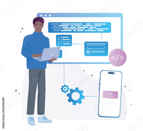 Mobilní platby pomocí smartphonu. Koncept platebního terminálu Near field communication. Online transakce, paypass a NFC. Kreslený plochý styl vektorové ilustrace.