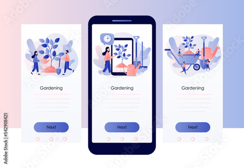 Opravy a údržba mobilních telefonů, výměna rozbité obrazovky. Mobilní aplikace onboarding obrazovky. Vektor banner šablona pro webové stránky a mobilní vývoj. Ilustrace designu webových stránek a uživatelského rozhraní.