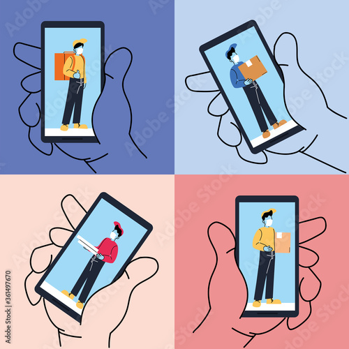Koncept opravy mobilních telefonů vektorová ilustrace. Muž opravit rozbité mobilní telefon. Údržba a servis chytrých telefonů. Muž pomocí páječky na opravu telefonu.