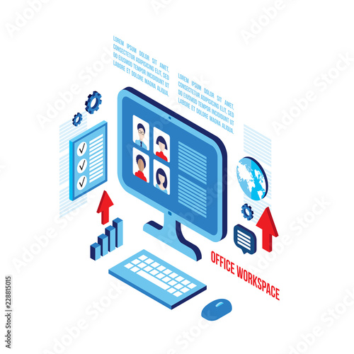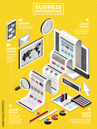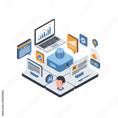 Mobilní web analytics koncept vektorové ploché izometrické ilustrace. Mobilní analytický proces monitorování a shromažďování dat prostřednictvím stolního počítače a smartphonu.