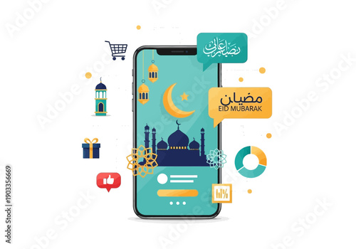 Moderní gadgets vektorové ploché ilustrace. Notebook, mobilní telefon, sluchátka, hudební přehrávač, chytré hodinky a ruční fotoaparát. Módní elektronická zařízení a nová nositelná technologie plakát, banner.