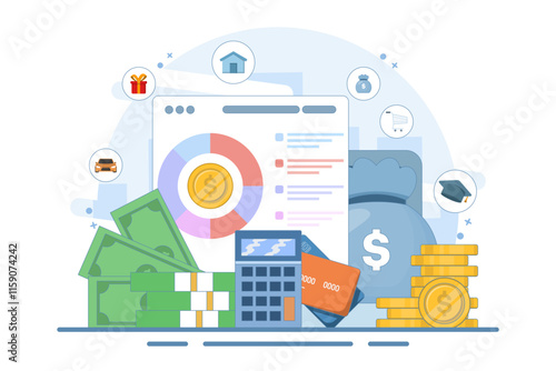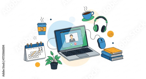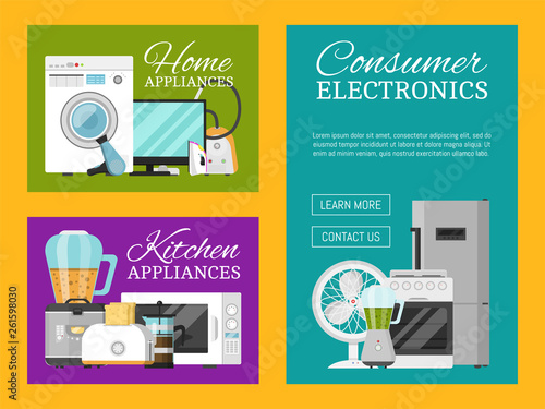 Moderní gadgets vektorové ploché ilustrace. Notebook, mobilní telefon, sluchátka, hudební přehrávač, chytré hodinky. Módní elektronická zařízení a nová nositelná technologie plakát, banner.