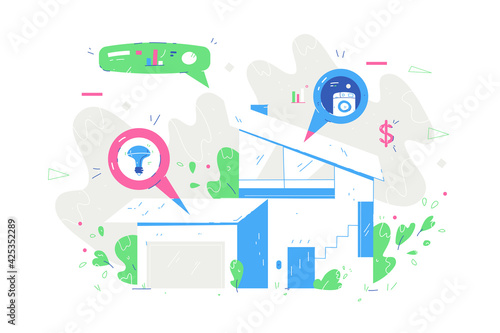 Moderní gadgets vektorové ploché ilustrace. Notebook, mobilní telefon, tablet, chytré hodinky a smartphone. Elektronická zařízení, nositelná moderní technologie, plakát digitálních technologických inovací, banner.