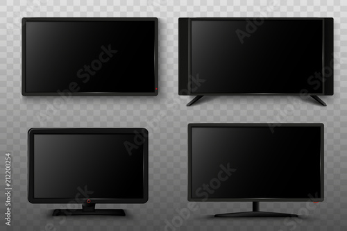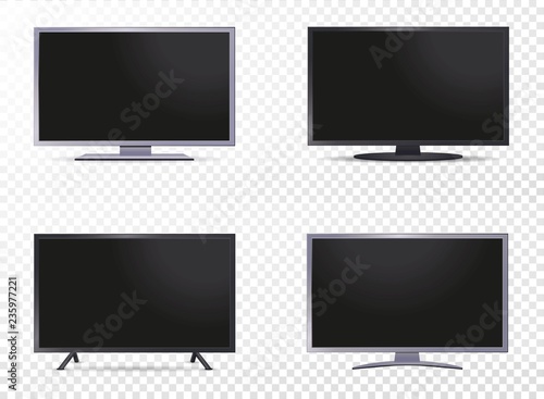 Moderní smart TV set 3D vektorové ilustrace. Izolované realistické ikony na průhledném pozadí. LCD plazmová obrazovka. Kopírovat šablonu prostoru