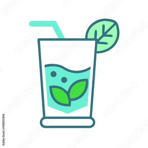 Ikona koktejlového nápoje. Mohito ve skleněném vektoru. Bar nápoj pro občerstvení izolovaných na bílém pozadí