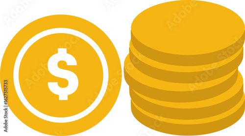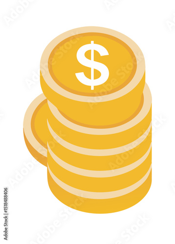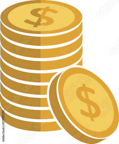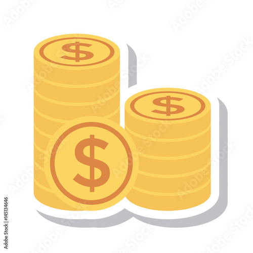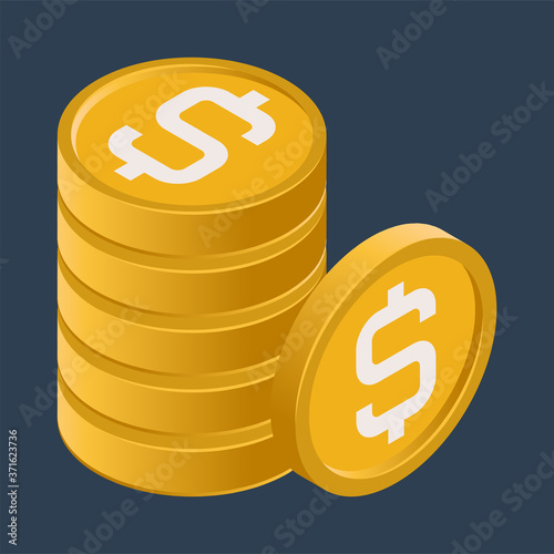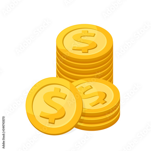 Peníze stack vektor. Ikona hromady zlatých mincí. Zlatý dolar měna hotovost izolovaných na bílém pozadí