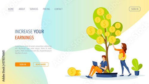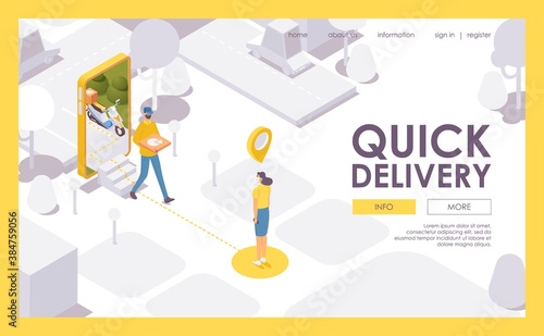 Šablona webové stránky převodu peněz. Vektorová izometrická ilustrace člověka, který posílá dolarové mince jinému muži prostřednictvím smartphonu. Koncept mobilního bankovnictví.