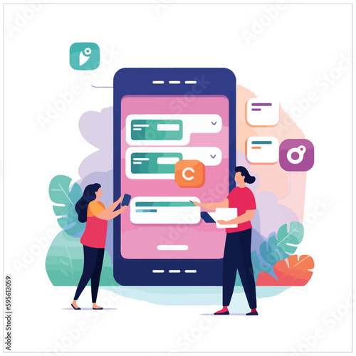 Služba převodu peněz, vektorová plochá ilustrace. Velký smartphone s bankovními kartami na obrazovce a drobní lidé s hotovostí. Online bankovnictví, koncept internetových plateb pro webový banner, webovou stránku atd.