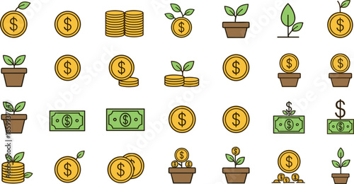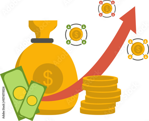 Peníze strom, zlaté cihly, peníze tašky, šipka graf, ploché vektorové izometrické ilustrace. Investice do koncepce zlata.