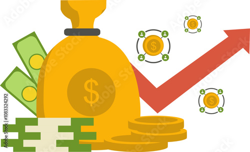 Peníze strom, zlaté cihly, peníze tašky, šipka graf, ploché vektorové izometrické ilustrace. Investice do koncepce zlata.