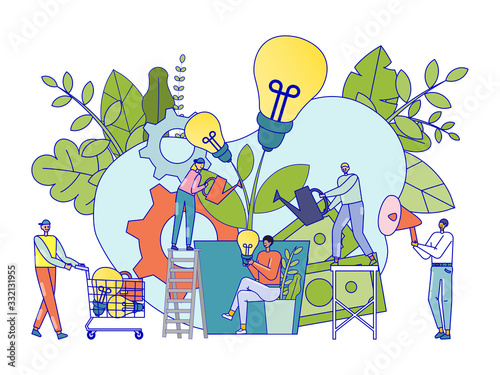 Podnikatelé sklízejí peníze při výběru dolarových mincí a bankovek ze stromu peněz, vektorová plochá ilustrace. Finanční růst, zisk, obchodní úspěch, koncept bohatství.
