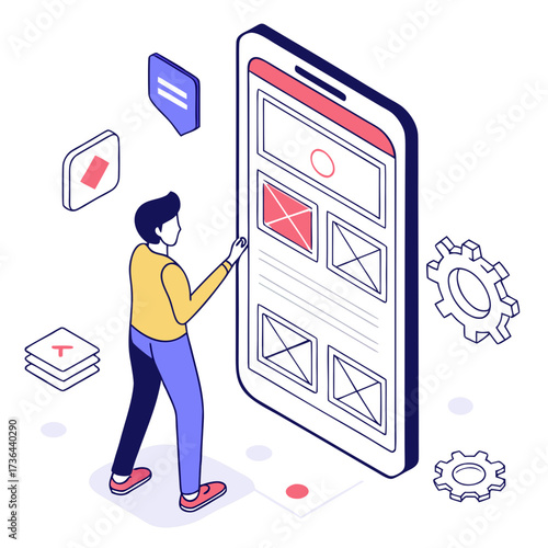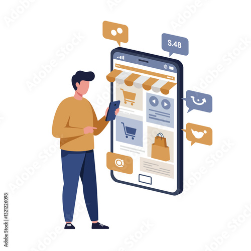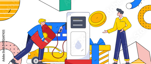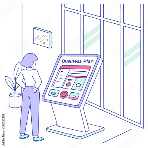 Matka a malý syn dítě objednávání jídla a pití pomocí interaktivní jídlo POS terminál stroj kreslený vektorové ilustrace. Moderní technologie, elektronický kiosek prodávající fastfood