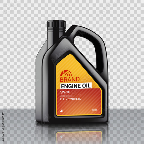 Kontejner na motorový olej ad. Vektorové 3D ilustrace. Design šablony láhve na motorový olej do auta.