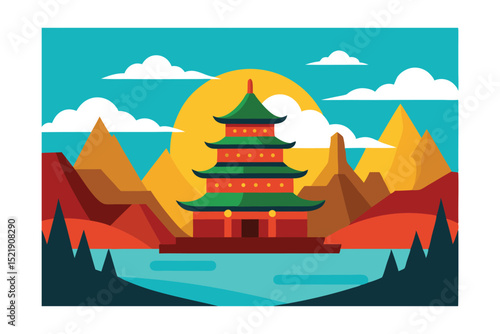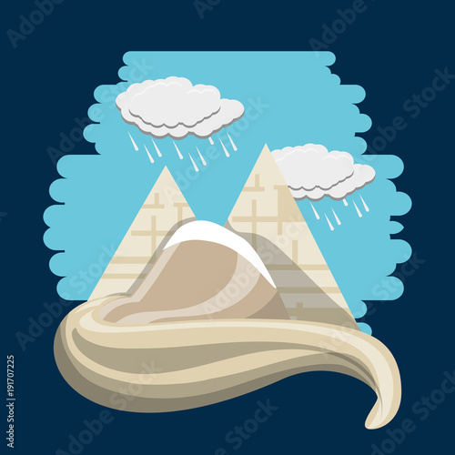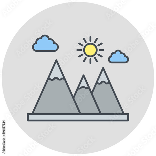 Horská krajina. Vektorový papír řez umění řemesla styl. Snow hill, nebe, slunce a mrak origami abstraktní pozadí. Zimní příroda 3D scenérie pro cestovní plakát