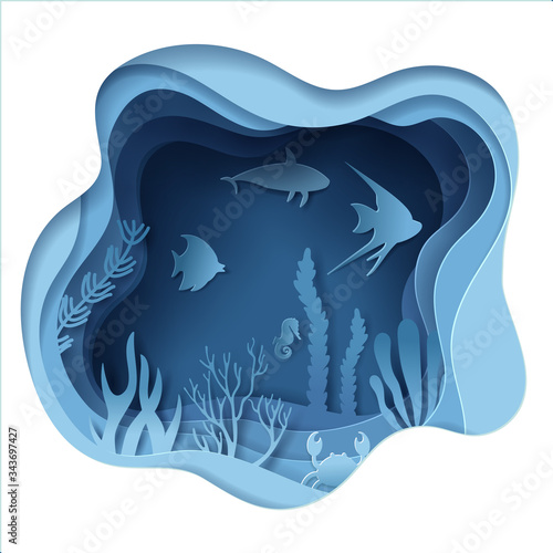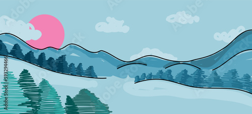 Vektor vrstvený papír střih styl Zimní hory krajina s alpinista horolezec muž silueta lezení skála s lanem. Extrémní zimní sporty. Horolezectví, zimní turistika, lezení v ledu.