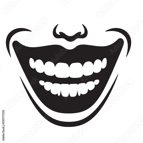 Ústa úsměv se zuby vektor. Scary halloween monster nebo joker charakter výraz s strašidelný zubatý úsměv izolovaných na bílém pozadí