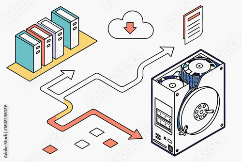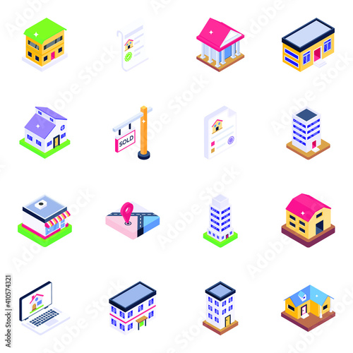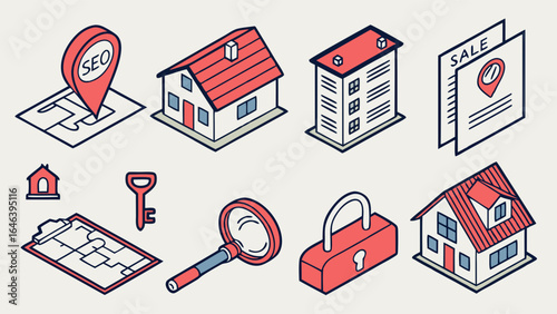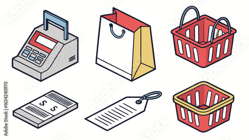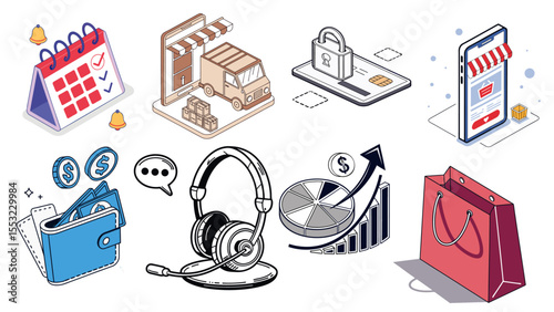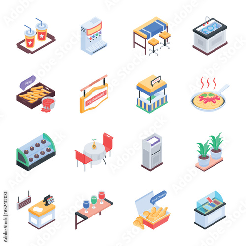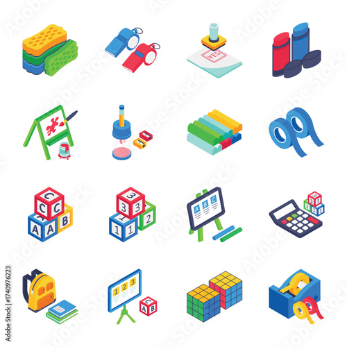 Kino příslušenství a gadgets v izometrickém stylu designu. Vektorové ploché 3D ikony.
