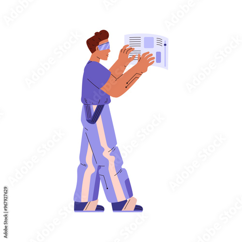 Svalnatý sportovec pití protein koktejl v okolí sportovní výživa balení vektorové ilustrace izolovaných na bílém pozadí. Vitaminový komplex pro silné budování těla a zdravotní péči