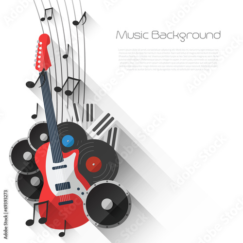 Abstraktní hudební pozadí s vinylovým diskem a poznámkami, hudební nástroj, houslový klíč vektor v papírové řezané umělecké řemeslné ilustraci. Hudební koncert, vystoupení dj nebo hudební párty reklamní šablona