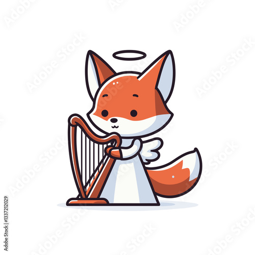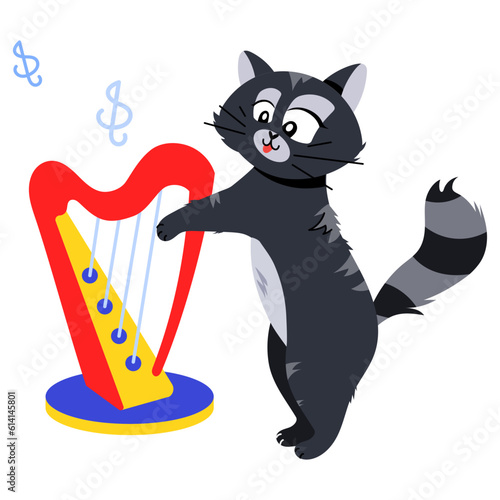 Hudba kočka hraje harfu vektor. Cartoon funny pet animal character hudebník ikona. Kotě dává hudební výkon izolovaných na bílém pozadí